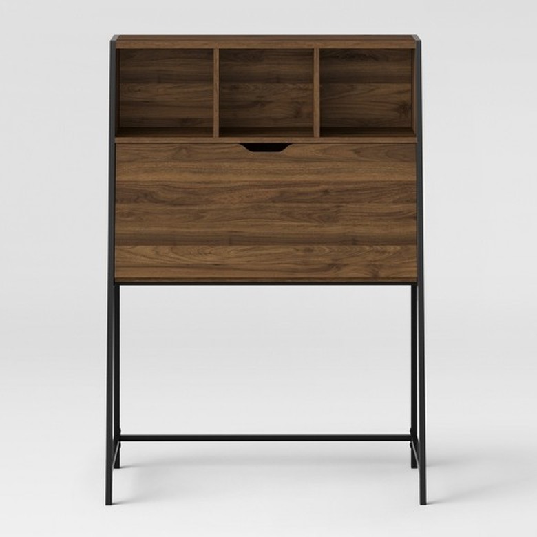 It's all about priorities: If you want to have a king-sized bed in a small room, you'll probably have to give up on nightstands. And if you can't fit a big desk into a small corner space? Try a secretary-style desk with a fold-down surface, like the Loring Secretary Desk from Target's new Project 62 line.
