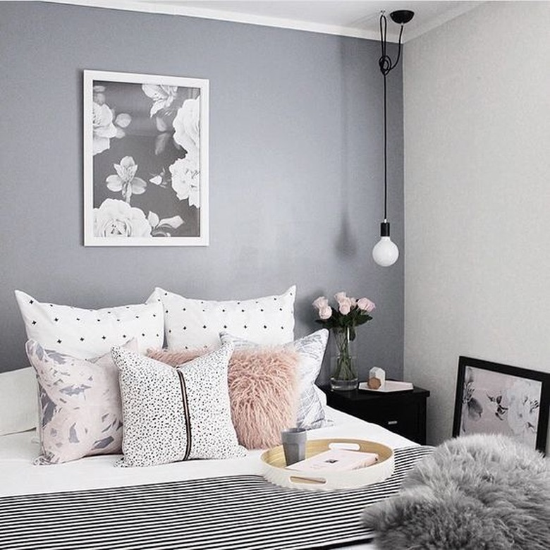 Don't forget that your bed is an additional area for decor. Invest in two solid pillows for the night and artfully arrange mismatched throw pillows on your bed during the day. We love these velvet pillows with a soft luster by West Elm.