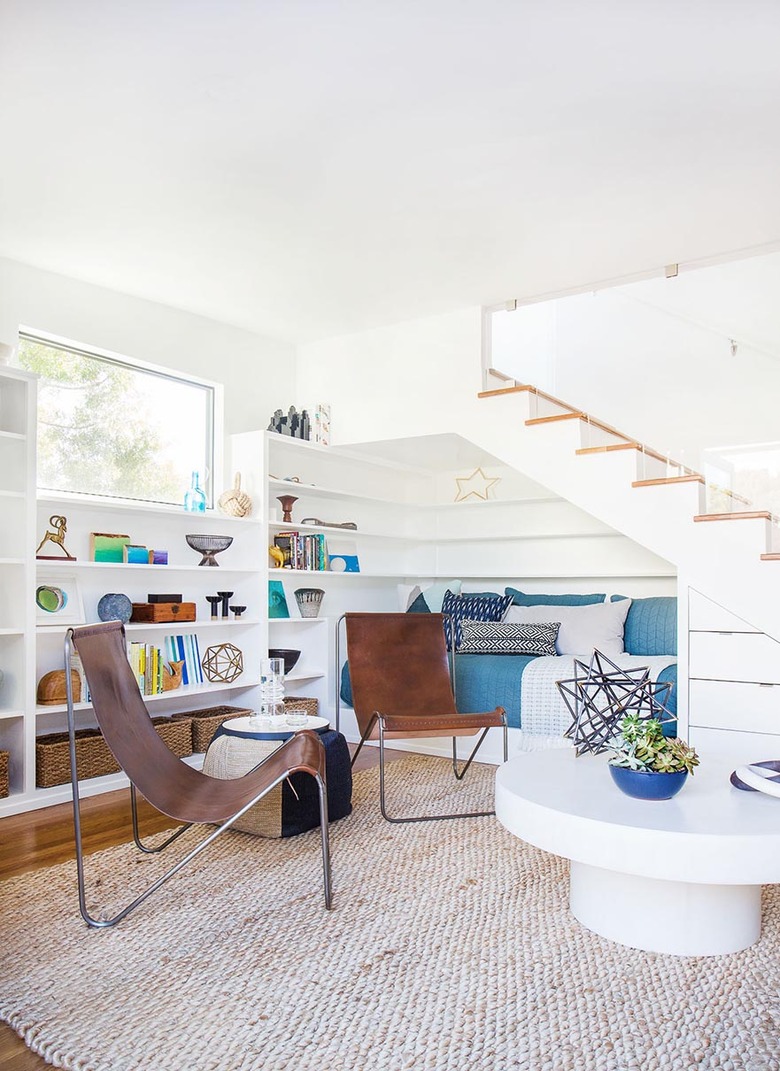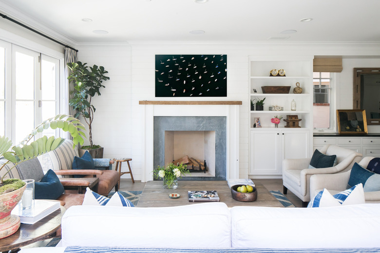 Your communal room should feel like a place that wouldn't mind getting a little sand in the corners — so feel free to mix up pieces, have shelves full of imperfectly placed items, and cushy textures that inspire relaxing.