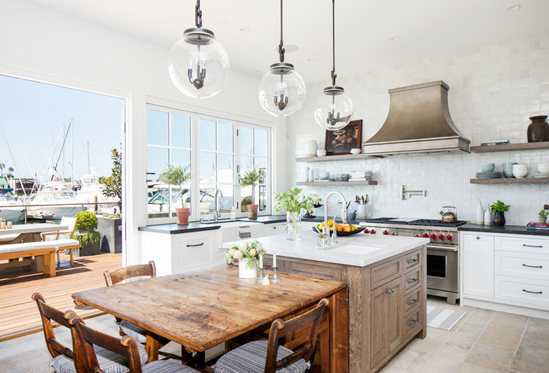 We love this kitchen because the windows are bare. No curtains or blinds, just sparkling clean windows that let all of the light pour into your home. Of course, this isn't always manageable when there's a dirt patch or a city street right outside your window. Instead try sheer curtains or a sheer roller shade — something that gives the illusion of a bare window.