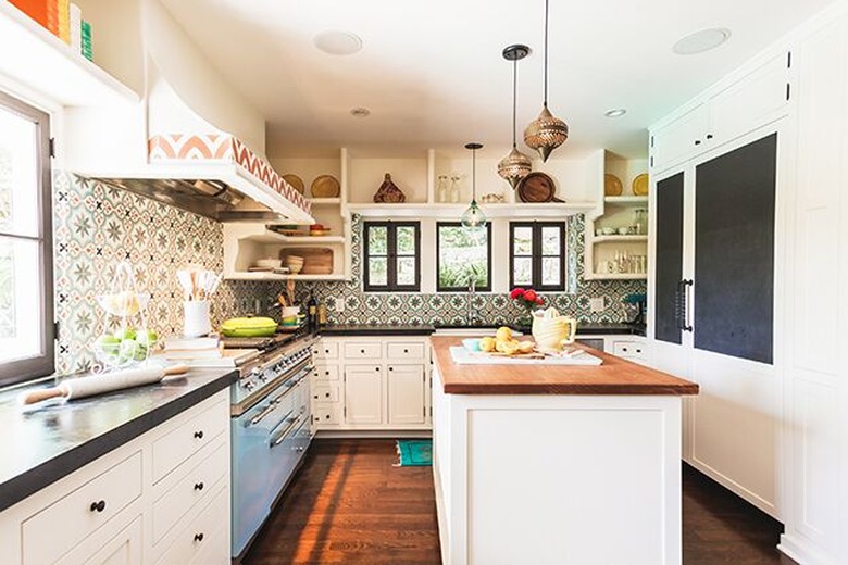 Placing orange tile on the oven hood is such a fun way to add an extra pop of color to your kitchen.