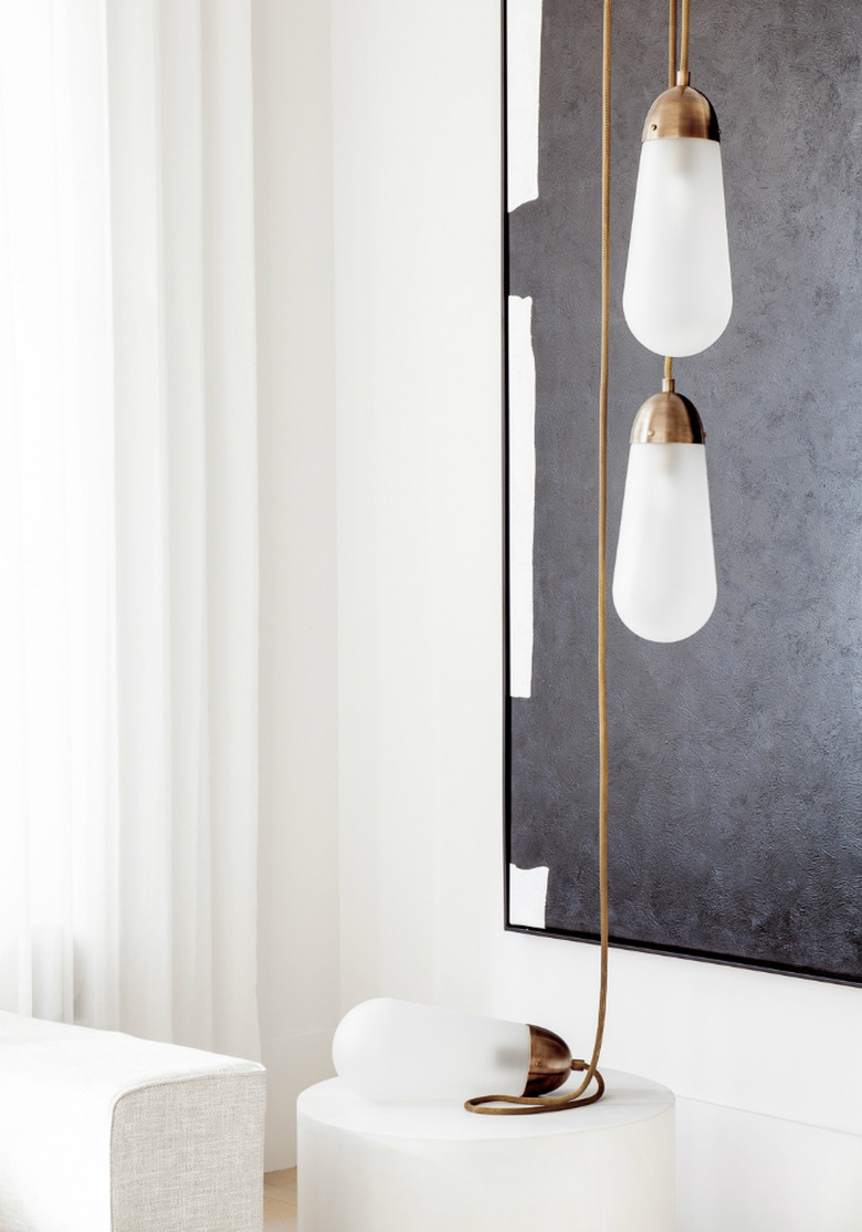 The timeless appeal of Ferm Living's socket pendant is undeniable. The minimalist brand continues their tradition of highlighting the beauty found in simplicity by pairing a sleek brass socket with a spherical opal shade. Suspended by a light-gray fabric cord, this luminous orb seemingly floats in mid air.