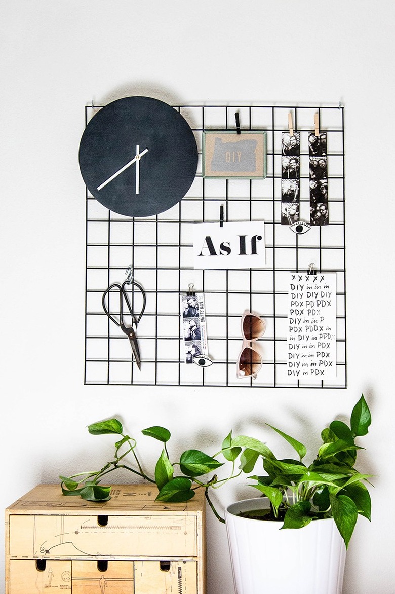 This DIY is as easy as 1-2-3. Literally. All you need is a metal grid, a little spray paint, and some wall hooks, and you have modern wall decor to display personal treasures and mementos.