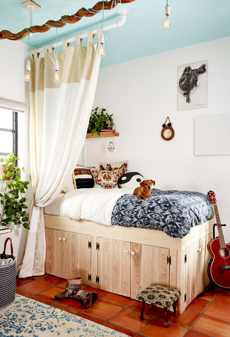 Matching your ceiling to your bedding is an unexpected design decision that looks all kinds of amazing. It's particularly perfect if you're struggling to find cohesion in your space.