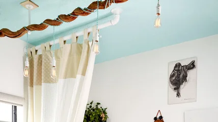 We love a space that's unafraid to play with color. Especially if that space involves a gorgeous blue ceiling like this one.