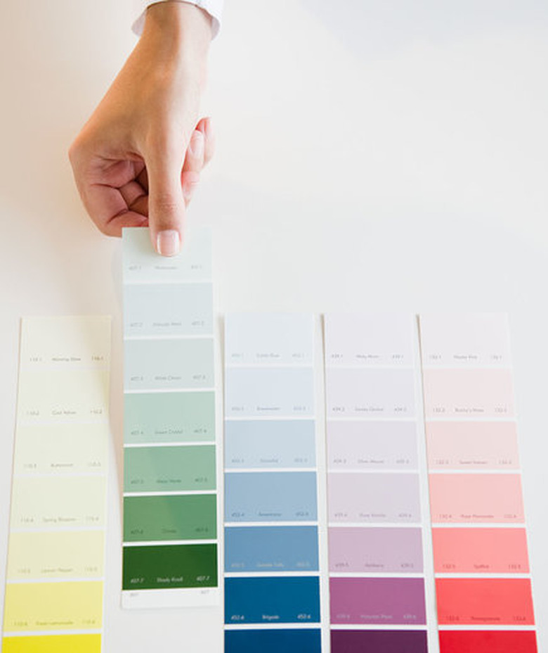 Color wheels and paint swatches are insanely handy when it comes to choosing paint colors for your home, and they're especially helpful when matching interior wall paints from room-to-room. While you're trying to decide on the perfect hue, consider a color palette that combines various shades of a single color for a particularly polished look. These helpful tools will also save you time and stress when you're ready to purchase your paint at the hardware store. Just hand the clerk your paint chip or swatch and they should be able to find, or match, your favorite color in no time.