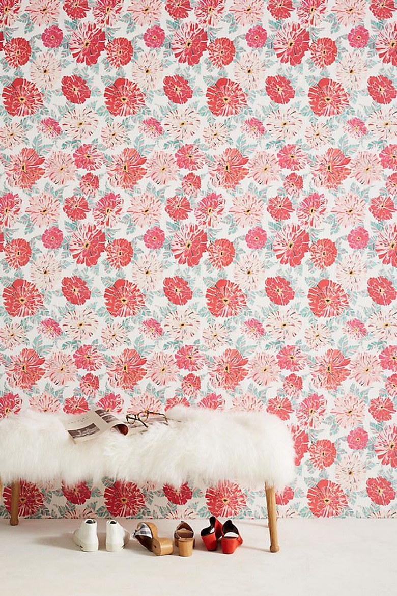 Don't worry, be happy. Your pink and red space will be an interior design hit with this lovely floral wallcovering from Anthropologie.
