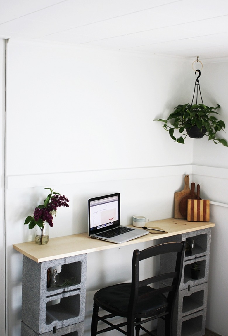 There's nothing worse than a workspace that's uncomfortably small. Take a cue from Caitlin at The Merrythought, and give yourself a little extra flexibility by creating this DIY cinderblock desk. You can adjust the height and length to fit your individual needs — and you can even make a standing desk.