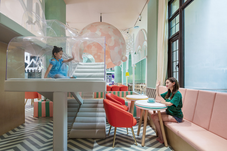 Let's flash back to childhood, shall we? We don't know about you, but the most fun we ever had at a restaurant was zooming through a McDonald's PlayPlace. Now, there's a new eatery in Shanghai which pretty much puts our childhood fun to shame: Neobio Kids Restaurant is beautifully designed, pastel paradise engineered for specifically for playtime.