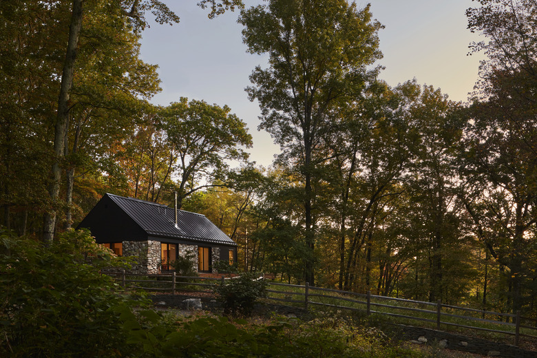 Hudson Valley, a preferred getaway for city dwellers, is home to a plethora of beautifully designed houses, from large estates to cozy log cabins. When a nature-loving couple came to architectural firm Takatina to re-do their woodsy stone house, Takatina wanted to make sure the structure retained its Hudson-ness, if you will, and so the Putnam Valley-based firm gathered inspiration from the region's common barn structures. Tasked with keeping the stone wall intact, the team created an exterior that incorporates an array of new and old materials. The new exterior combines a custom-color stained cedar siding with a metal roof and anodized metal plates on the facade to separate the new and existing stone wall.