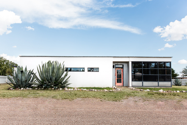 The property features two structures — a main house and a smaller, detached casita. Both spaces embody the open, industrial-meets-desert aesthetic that's become a preferred vibe for the new wave of people buying properties in Marfa.