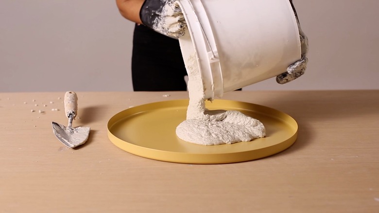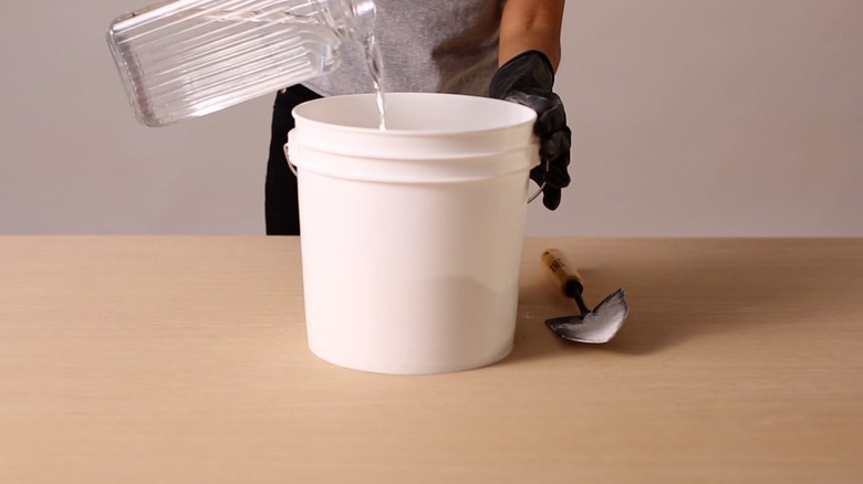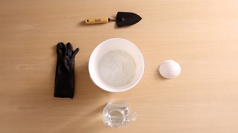 Wearing a dust mask, use an inexpensive garden trowel (you'll want to use an expendable one for this job!) to thoroughly mix 3.5 pounds white Portland cement with 7 pounds white sand in a bucket.