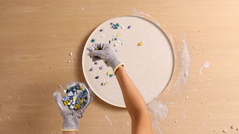 ¼ – ½ pound of mosaic smalti and/or glass tile pieces in desired colors (or enough to cover as much of the table's surface as you'd like)