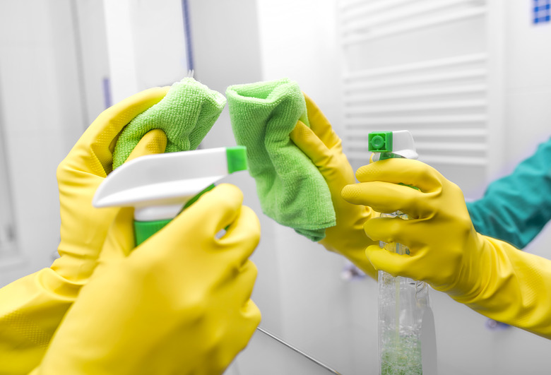After you've removed the bulk of the glue, you can take care of the residue with soap and water. Add a capful of vinegar per quart of solution to increase the cutting power. Wipe the area from where you removed the glue down with this solution, using a soft, non-abrasive cloth or a paper towel. While you're at it, it's a good idea to clean the entire mirror to get rid of streaks that may become visible only when the lighting changes.