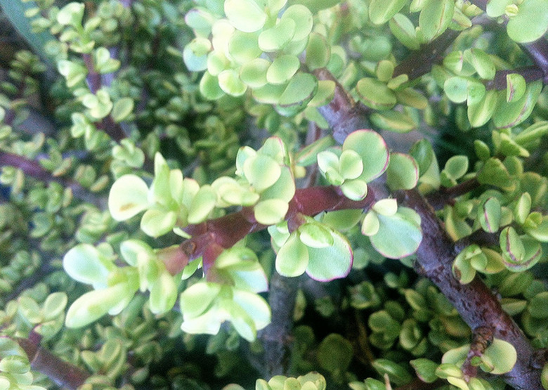 Elephant bush (Portlucaria afra 'variegata' ) may sound too big for the house, however, the plant is actually ground cover outdoors and a perfect foliage plant for hanging baskets. This lovely plant has thick, red branches covered with small, round, attractive leaves. Sometimes you'll also get tiny white or pink flowers. Give elephant bush bright sunlight, well-drained soil, and regular water.