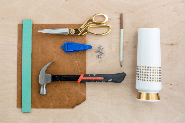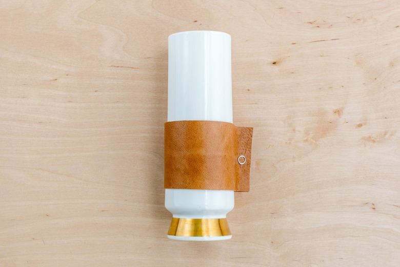 These days modern, minimalist decor seems to be focused around the idea of natural textures and colors. Happily, those are some of the easiest materials to come across in everyday life — and they're often well within budget, or even free if you just step outside and use what's in your own backyard. Today, we're demonstrating this idea with a tutorial for a DIY leather handled vase that uses organic scrap materials to give new personality to a vintage vessel.