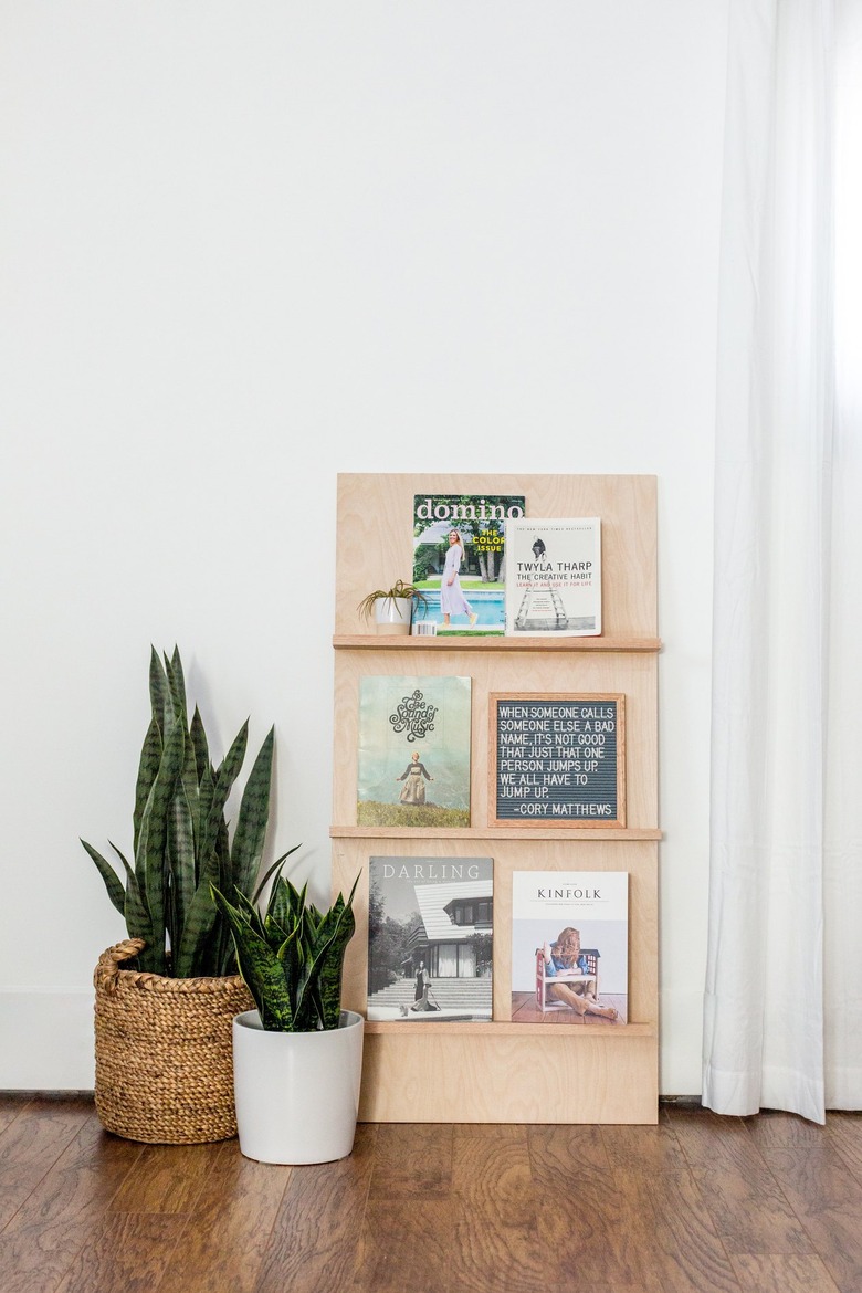 When you're searching design sites for minimalist home decor ideas, try looking to your favorite boutiques for inspiration as well. We've always been enamored with free-standing plywood displays at local design shops and bookstores, so we decided to try our hand at making a magazine rack using nothing but hardware store basics. Not only is the result beautiful in its simplicity, it's easy to make, too.