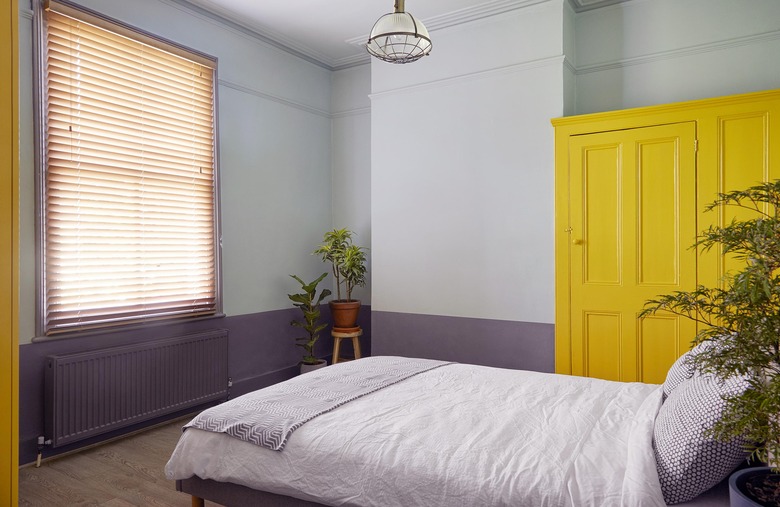 A sunny yellow paint was used to add personality to the cabinetry in one of the bedrooms.