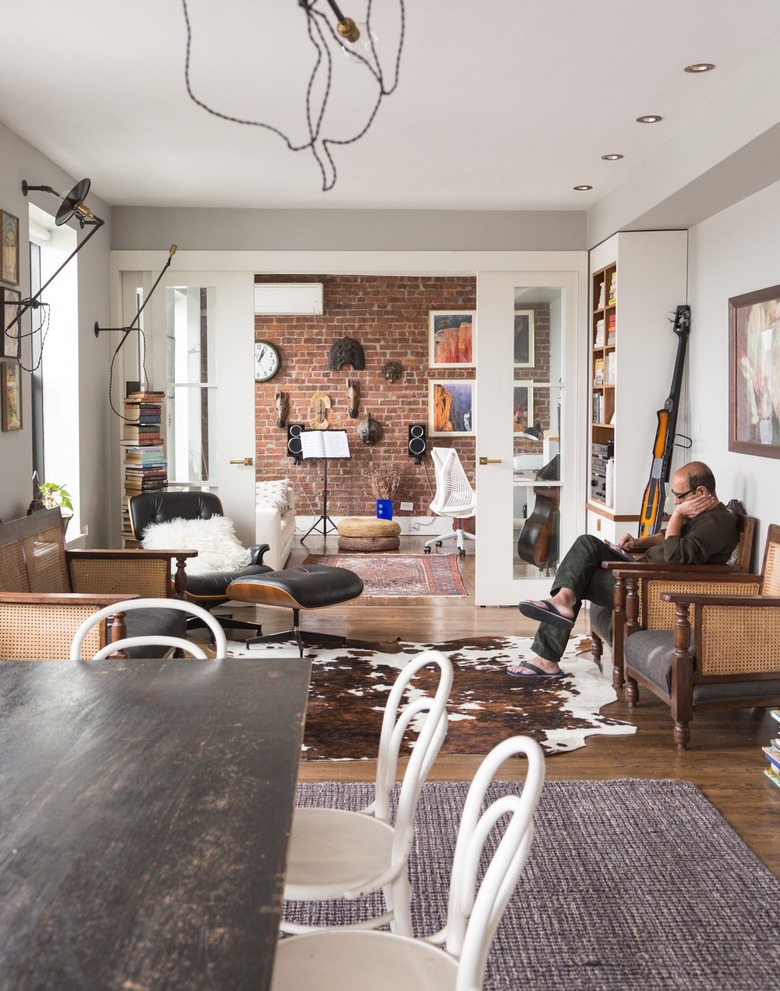 The apartment is made up of two combined units, and unfortunately the prior renovations had been less than successful. The space needed work, and the couple, who share the space with their 9-year-old daughter, Mira, and rescue dog, Bailey, planned to hire a contractor and work off of their own ideas. But while flipping through the New York Times, Vohra came across an article about the home of Stefanie Brechbuehler and Robert Highsmith, partners in the Brooklyn design firm Workstead.
