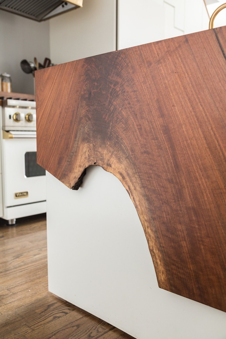 You Really Need To See The Raw-Edge Wood Waterfall Counter In This Home