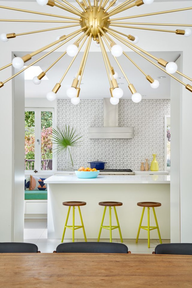 Give kitchen stools a refresh: Disassemble, spray paint the legs a fun neon hue, then put it all back together again.