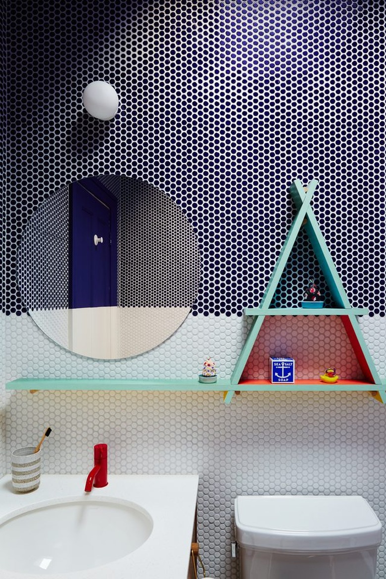 Here's another way we never, ever thought to use tile: a colorblocked scheme.