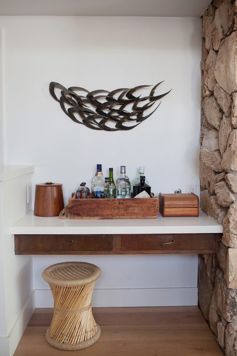 Painting cabinets is an obvious idea, but leaving exposed sides natural tells a cooler story.