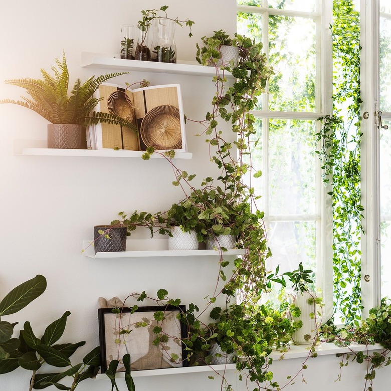 Wall shelving is good for more than just displaying your favorite tomes. Fill them up with your favorite small plants for a lush display of eye-catching greenery. You can even stagger your shelves to add a little extra visual interest.