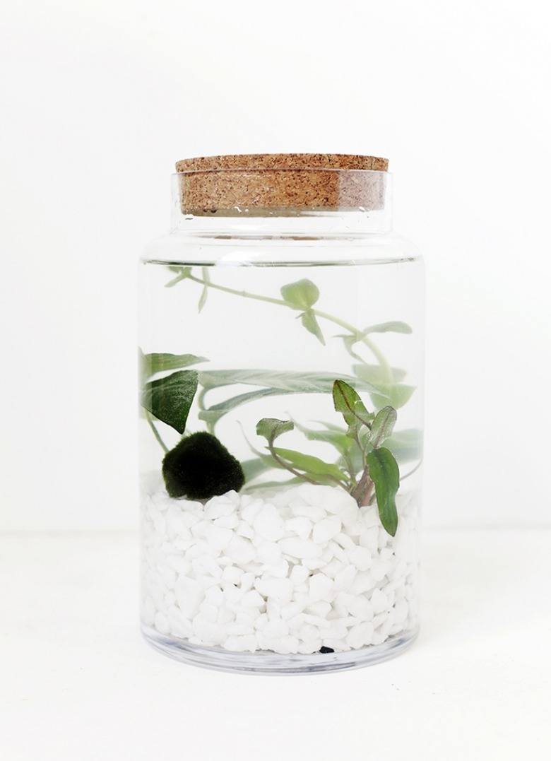 Most black-thumbed humans share a similar affliction: never knowing how much water their plants need. Don't let the fear of overwatering or under-watering stop you from enjoying greenery in your home. Opt for a water garden like this DIY from The Merrythought, instead. The final result is picture-perfect, which is good news for that Insta-worthy shelfie you've been working on.