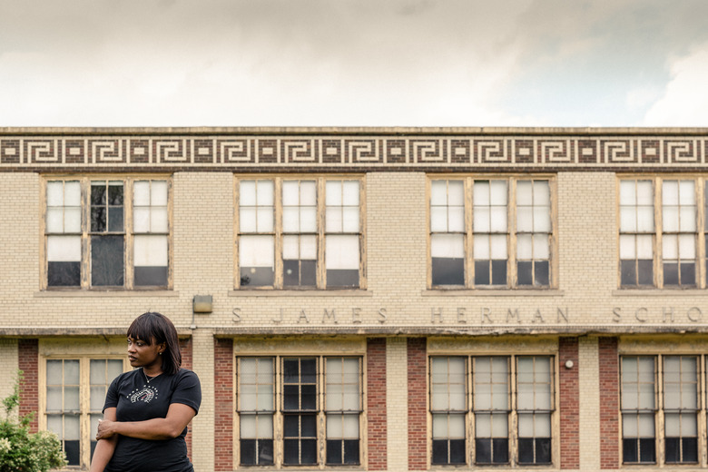 Brown in front of her alma mater, the now-shuttered James Herman Elementary School. It's the last remaining structure of the Herman Gardens public housing complex, where Brown grew up. Over a decade after the complex was demolished in 1997, Brown oversaw the first phase of redevelopment, called The Gardenview Estates, a mixed-income development with nearly 300 structures.