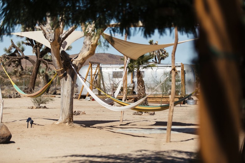 Welcome to Inspo Central, also known as the shared outdoor living area at this breezy Joshua Tree Airstream oasis, which features hammocks, outdoor tubs, and lounging areas meant to bring people together. To replicate this on a smaller scale, try adding a couple of breezy Anthro (or Target) hammocks to create a warm and welcoming boho-chic look in your backyard.