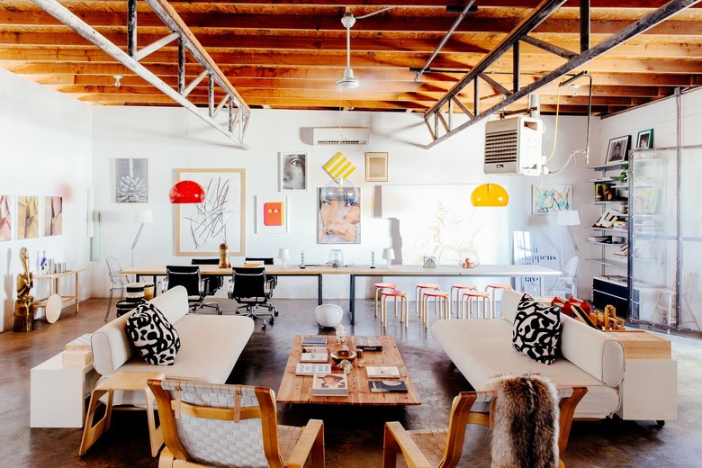 A vast loft-like living area in this modern Marfa, Texas home comes together thanks to a wide array of contemporary art, including a roster of top international artists, from Carol Bove to Darren Bader and Nate Lowman. If you're inspired to deck out your walls, our friends at Saatchi Art have curated a vast collection of artwork that's quirky, creative, beautiful, and won't break your bank.