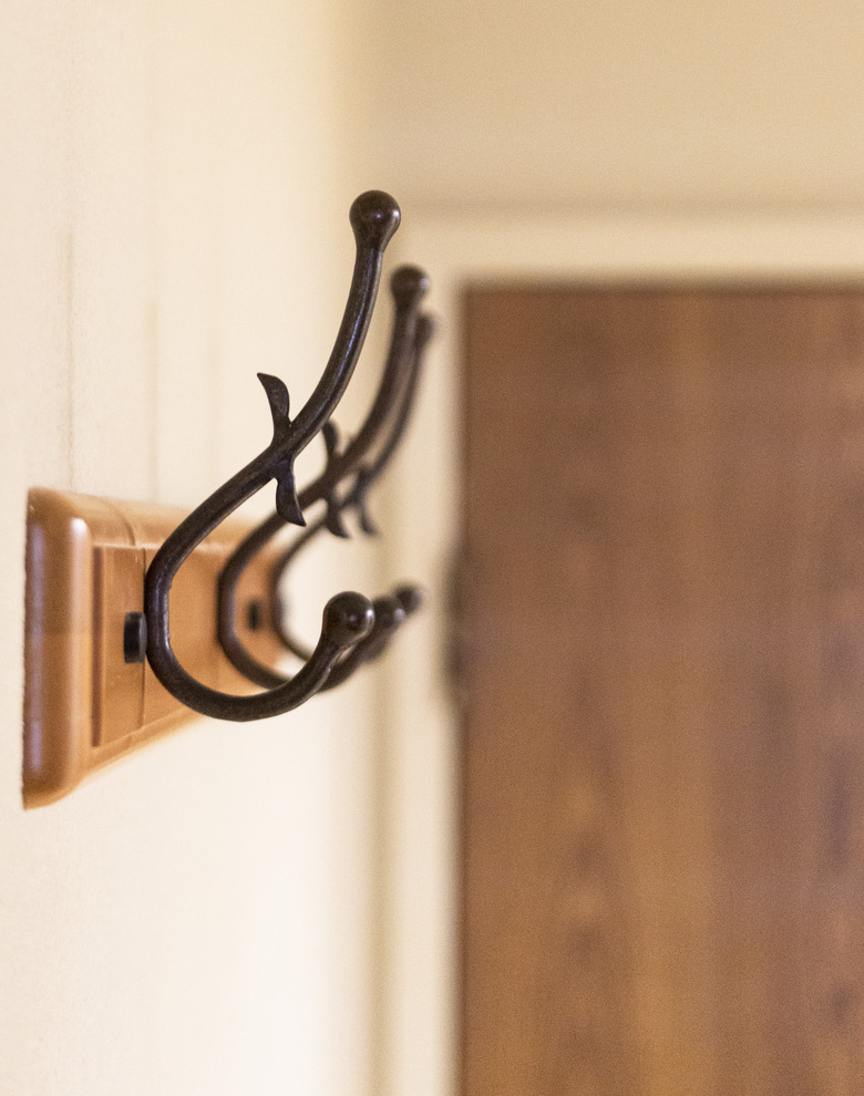 If the coat rack came with decorative plugs to fill the countersunk screw holes, insert them now to finish up your installation. If you drilled your own countertsinks, you can cover the screw heads with purchased wooden plugs. Be sure to purchase plugs that will fit into a 1/2-inch hole. If you choose not to use plugs, don't try to fill the screw holes with wood filler. It usually ends up looking worse than simply leaving the screw heads uncovered.