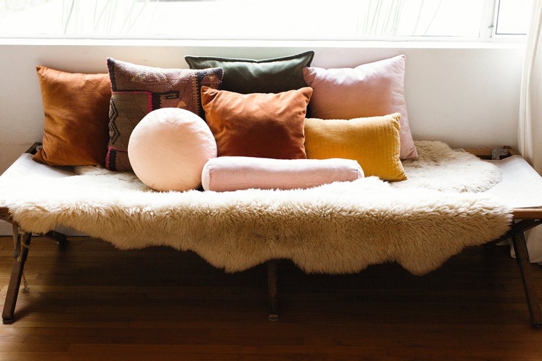 Textiles and warm, bohemian hues are important to Julia. She styled a vintage army cot with pillows from friends at Campaign Living.