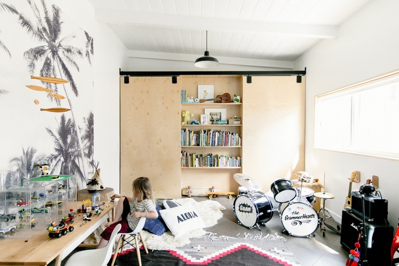 Inside, the playfulness continues in Gram's room. The custom closets and bookshelves are Rael Made.