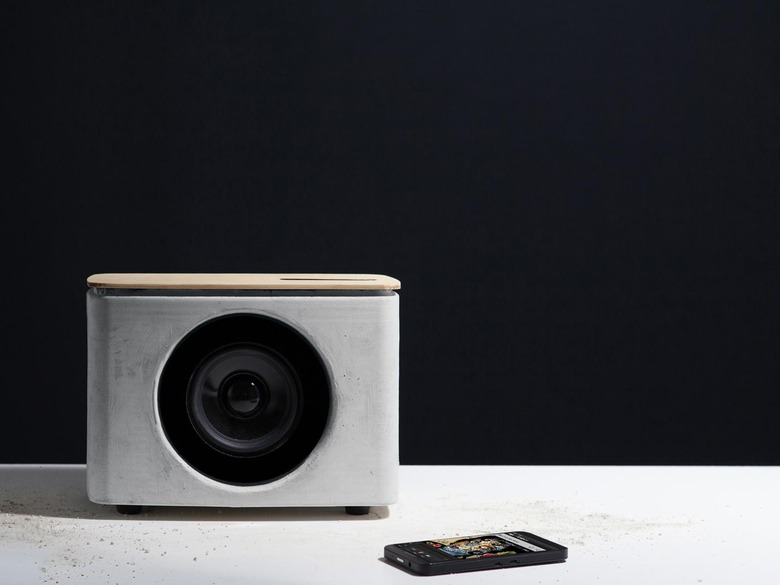 We're crushing hard on concrete, which is why this sophisticated speaker is calling to us. The choice of material isn't just for aesthetics — the concrete body enhances the bass while the fir wood top makes the treble ultra-clear.