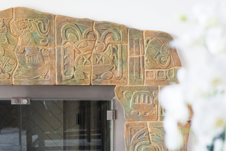 One clue to the answer came with the discovery made in the office: a large ceramic mantel with Mayan details.