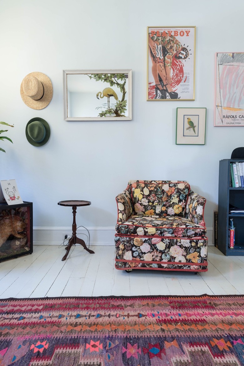 And all the while, Freibaum added the vintage, thrift, and antique elements that are central to her and DeGaetano's style, which is a nice amalgam of both their worlds — Freibaum is a co-owner of a boutique PR firm called Serious Business and DeGaetano is a gardener. "A lot of the artist or client creative collaborations I've done are reflected somewhere in our artwork or decor," Freibaum explains. "And Ben and I share a love of flowers and florals, and we do have a lot of items with flowers on them!"