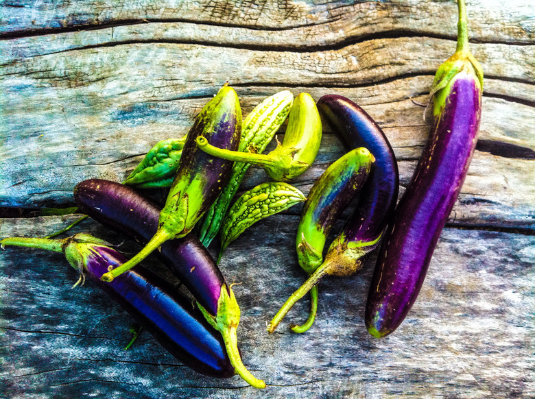 Eggplants used to be white, which is why they're named after eggs. While some are white, many are not, and many variations on the theme are available. You can find them round or elongated; white, striated purple, and even black. This meaty veggie takes between 50 and 80 days to harvest, depending on the cultivar. These plants don't like the cold, so put them in the ground after the last frosts of winter fade into memory.