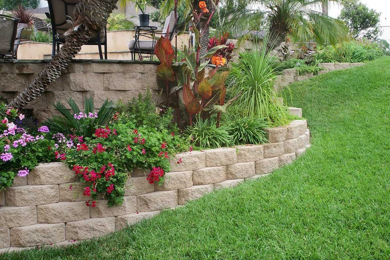 Retaining walls are almost always used to deal with sloping ground, which is nice to look at but isn't much good for anything besides sledding or making yourself dizzy. By cutting into a slope with a retaining wall, you create a flat area below the wall and an elevated area above it. Gentle slopes usually can be reshaped with one short retaining wall. Steeper or longer slopes may call for multiple walls that create step-like terraces in the landscape, and each step of the terrace can become a planting bed or other feature.