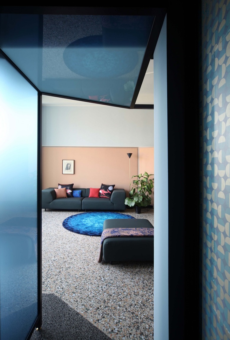 Blue glass partitions were a clever way to bring privacy to the home, contributing to the new and modern story the architects constructed.