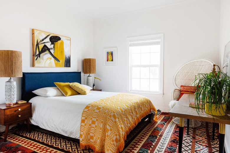 For a more lively space, a few pops of bright color will do the trick. Sakara Life co-founder Danielle DuBoise's eclectic bedroom comes together beautifully by spreading vibrant tones throughout.