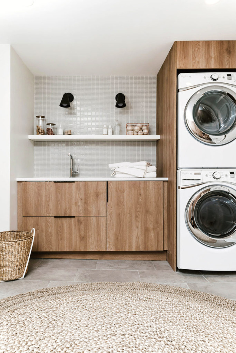 A countertop is a necessity for folding stuff and storing essentials. But what if your "laundry room" isn't actually a room, but rather a nook that's just big enough for a washer and dryer? Take a cue from Vintage Revivals with a stacked plywood solution.
