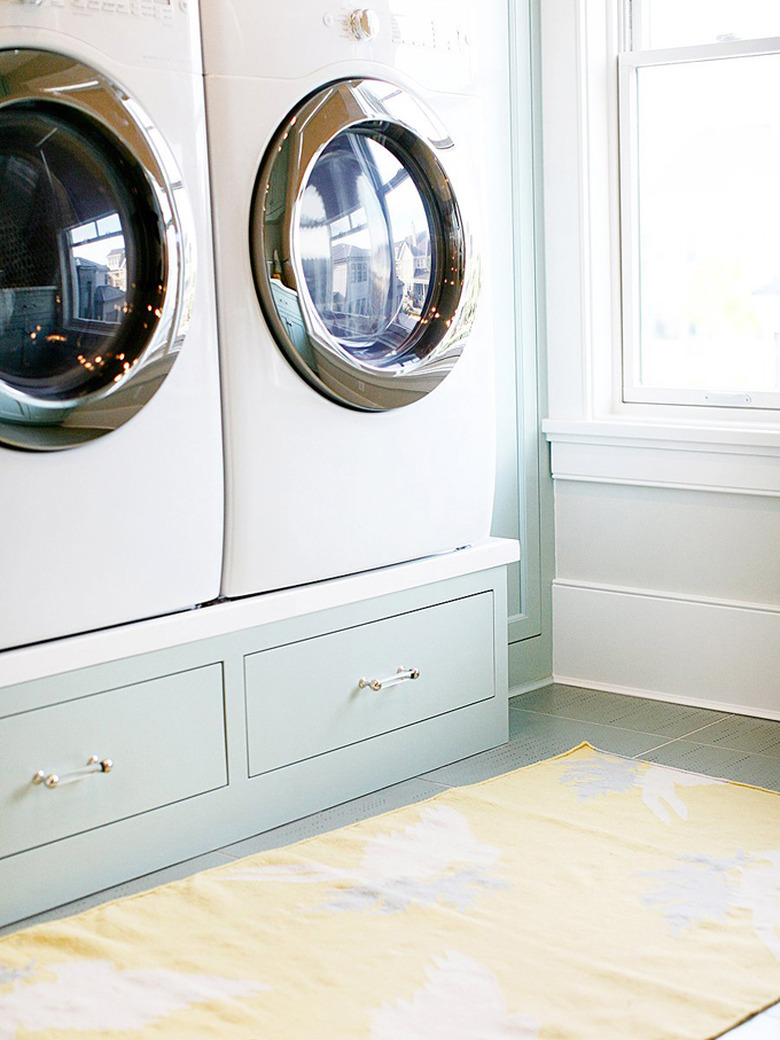 Why put a pedestal under your washer/dryer? It raises the height of the units, so you don't have to bend as much (much better for your back!) and the drawers are super for stashing odds and ends. Many new models come with drawers below for an additional cost, and some manufacturers can retrofit older machines.
