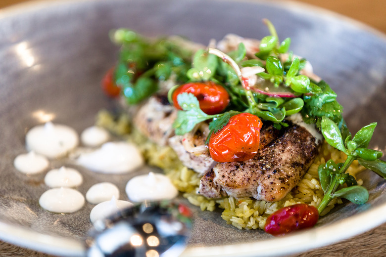 First came Hollingsworth's concept for the restaurant, and next came House of Honey, the interior design firm which brought it to life. In collaboration with architect Osvaldo Maiozzi and interior design firm Studio Unltd, House of Honey's creative director Tamara Honey got to work uniting Hollingsworth's vision for the food with the aesthetics, ultimately landing on "sophisticated rusticity" as the desired look. The build relied on basic, natural materials — steel, glass, copper, stone, lots of wood — and muted colors to create a space that's bright and airy, but at the same time grounded in earthy tones.
