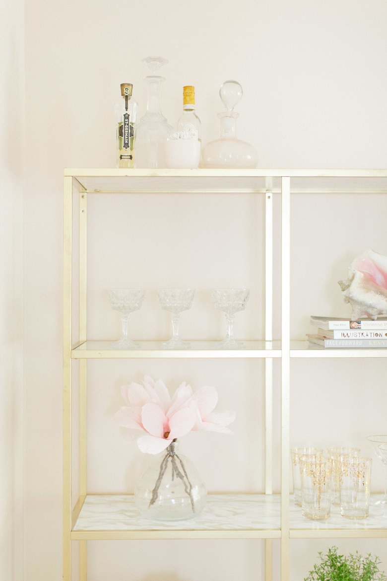 Looking for a place to show off your most beautiful tchotchkes? Follow Jacquelyn Clark's lead and transform Ikea's Vittsjö ( $79.99 ) into a gorgeous shelving unit, perfect for displaying glass vases and delicate pink peonies.