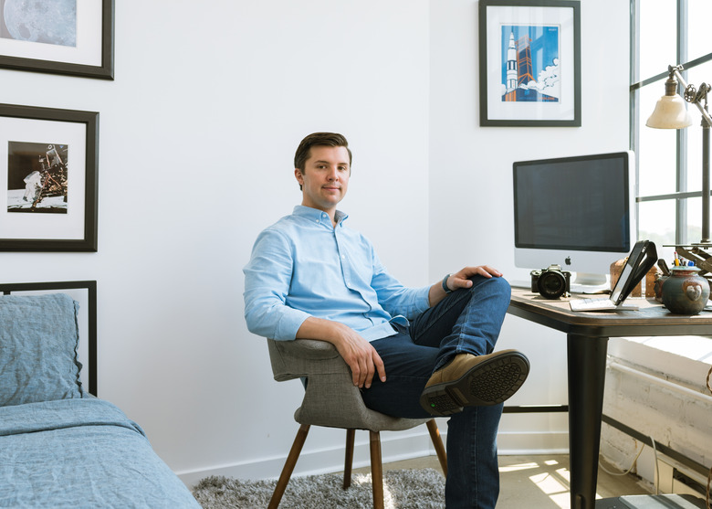 Grudzinski's low-lying CB2 bed and the desk where he edits photos are also oriented to best capture the skyline. "Laying in bed and watching the sun rise over Philly has become one of my favorite things to do," he said.