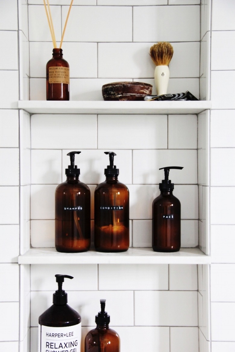 Give your fave shampoo and conditioner a little face-lift by transferring them to these dramatic amber-brown bottles. Not only will the new look add a little fall bathroom decor flair, but everyone will also think you spent a fortune on fancy indie brand bath products. Sarah from Pastiche shares her DIY how-to here.