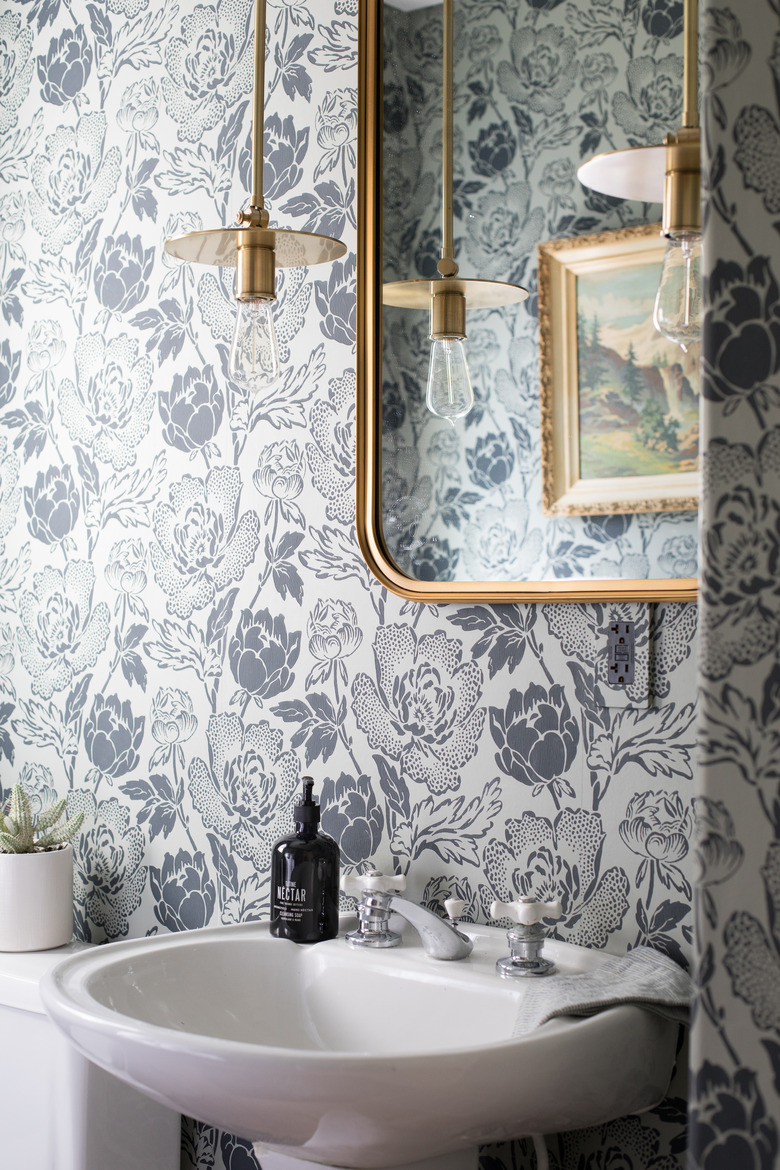 Why shouldn't your bathroom feel fall-like all year round? Brittany from The Vintage Rug Shop used this dramatic floral print wallpaper in her master bathroom redux. It creates a picturesque autumnal ambience perfect for primping and washing the day away. But if you're looking for something a little less permanent, opt for removable wallpaper.