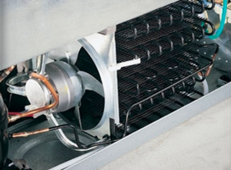 The Never Clean condenser is usually located underneath the refrigerator. You access it by pulling the refrigerator away from the wall, unplugging it and removing a back panel by taking out some screws. Use a vacuum with a crevice attachment to suck dust off the housing. It's best not to use a coil brush, because it will force dust through the housing and onto the coils. You might want to wipe down the housing with a damp rag after vacuuming it. When you're done, don't forget to replace the back panel before you plug in the refrigerator and push it back against the wall.